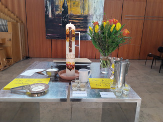 Seit 10. Mai finden wieder Gottesdienste unter hygienischen Auflagen und Abstandsregelungen statt - die Kirche ist schon vorbereitet...